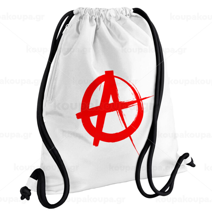 Anarchy, Backpack pouch GYMBAG white, with pocket (40x48cm) & thick cords