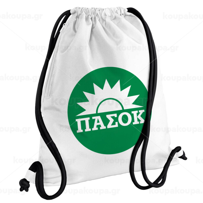 PASOK Green/White, Backpack pouch GYMBAG white, with pocket (40x48cm) & thick cords