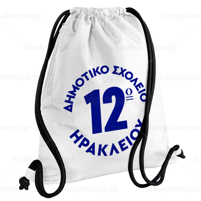 Έμβλημα Σχολικό λευκή, Backpack pouch GYMBAG white, with pocket (40x48cm) & thick cords