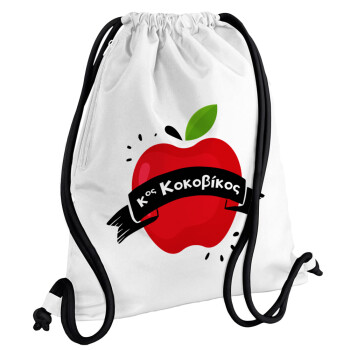 Αναμνηστικό Δώρο Δασκάλου Κόκκινο Μήλο, Backpack pouch GYMBAG white, with pocket (40x48cm) & thick cords
