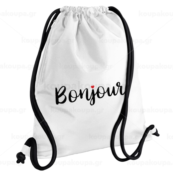 Bonjour, Backpack pouch GYMBAG white, with pocket (40x48cm) & thick cords