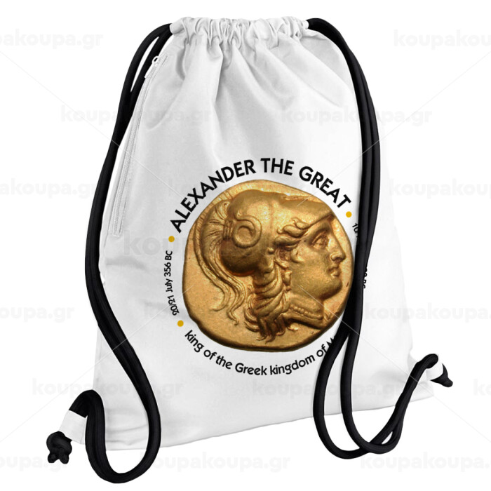 Alexander the Great, Backpack pouch GYMBAG white, with pocket (40x48cm) & thick cords