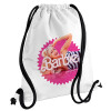 Barbie is everything, Backpack pouch GYMBAG white, with pocket (40x48cm) & thick cords