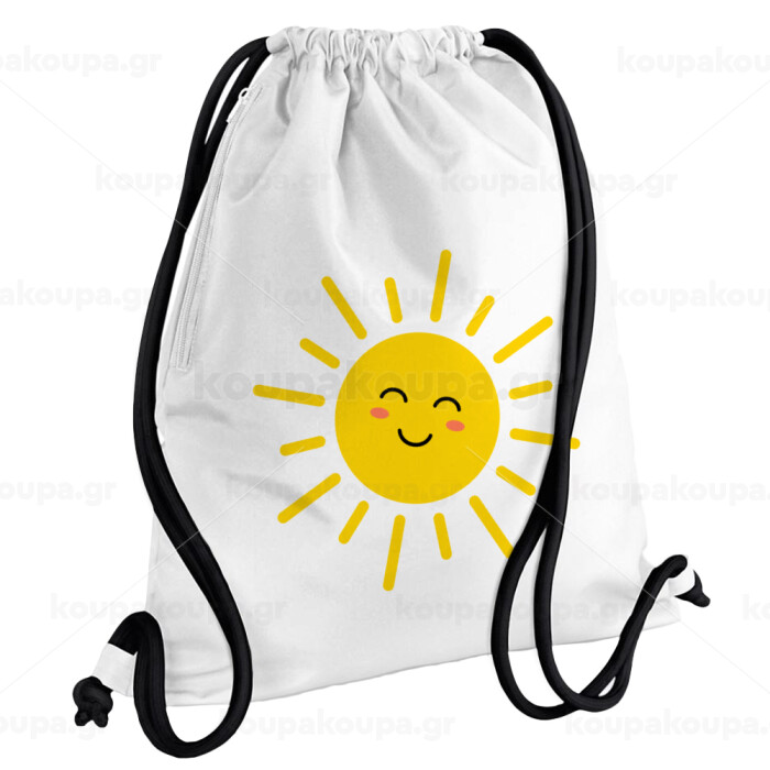 Happy sun, Backpack pouch GYMBAG white, with pocket (40x48cm) & thick cords