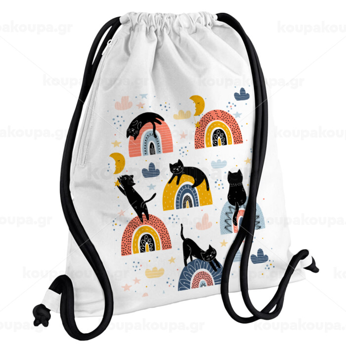 Γατούλες, Backpack pouch GYMBAG white, with pocket (40x48cm) & thick cords