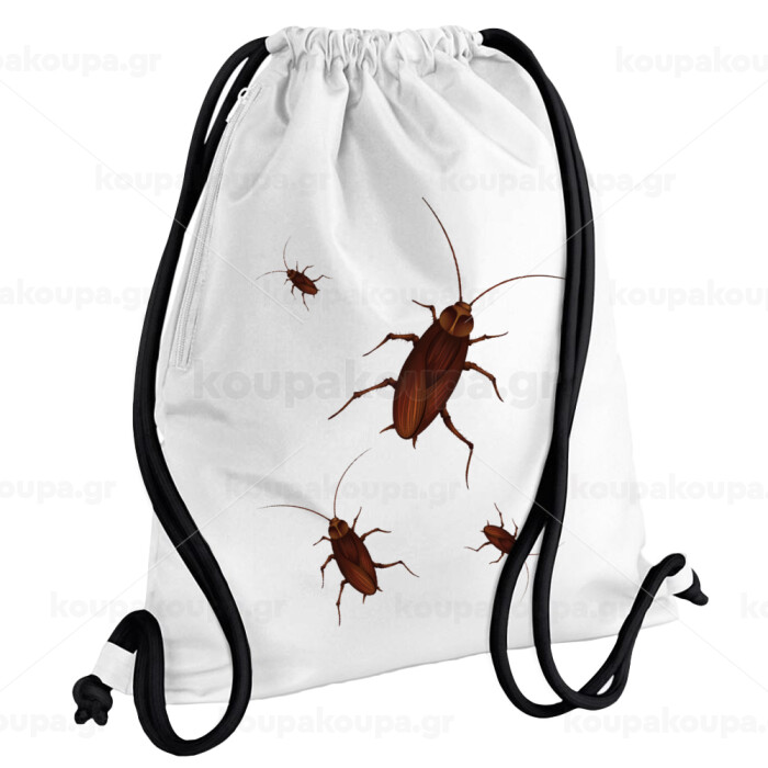 Blattodea, Backpack pouch GYMBAG white, with pocket (40x48cm) & thick cords