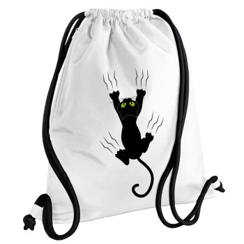 cat grabbing, Backpack pouch GYMBAG white, with pocket (40x48cm) & thick cords