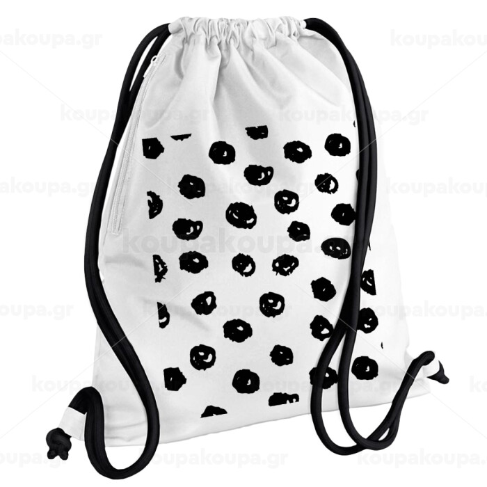 Doodle Dots, Backpack pouch GYMBAG white, with pocket (40x48cm) & thick cords