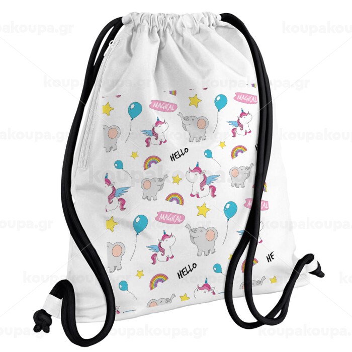 Happy Clouds Doodle, Backpack pouch GYMBAG white, with pocket (40x48cm) & thick cords