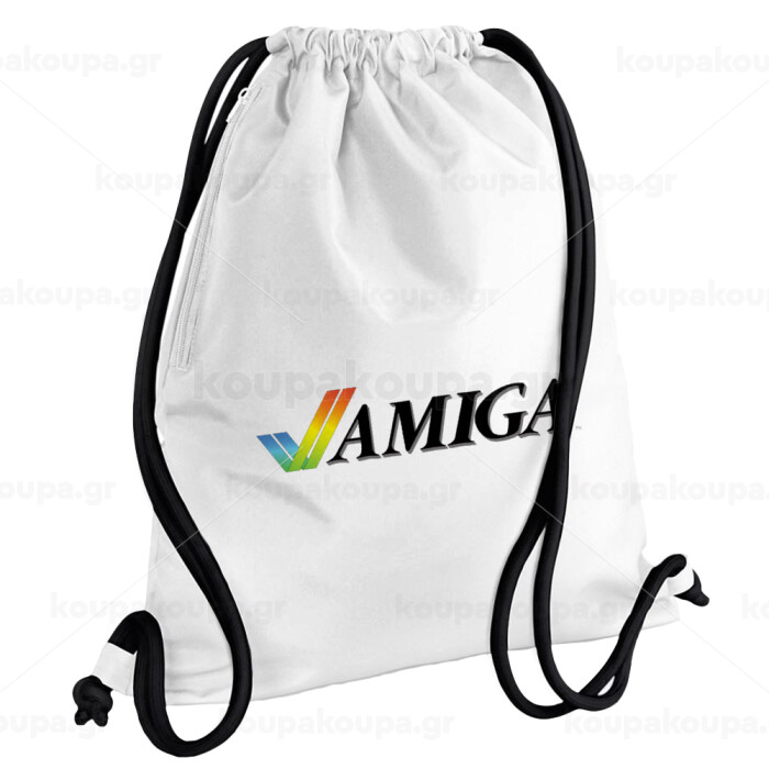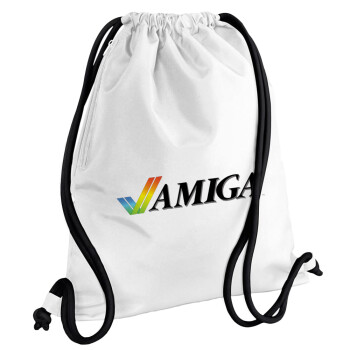 amiga, Backpack pouch GYMBAG white, with pocket (40x48cm) & thick cords