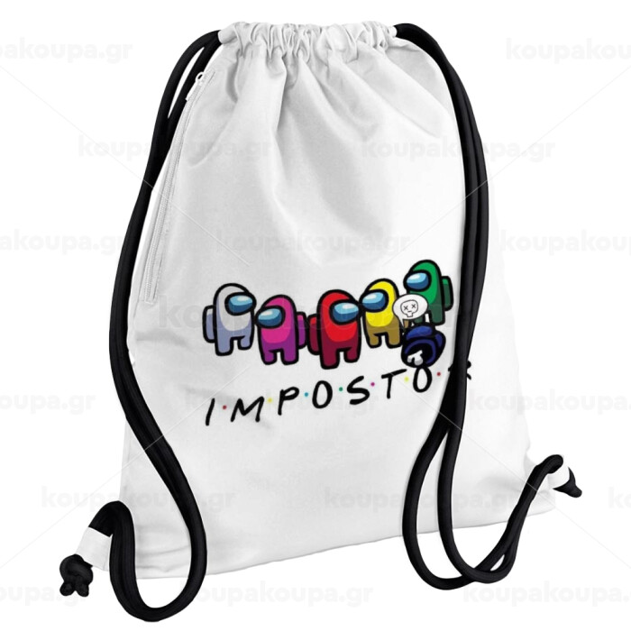 Among US impostor, Backpack pouch GYMBAG white, with pocket (40x48cm) & thick cords
