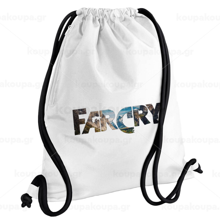 Farcry, Backpack pouch GYMBAG white, with pocket (40x48cm) & thick cords