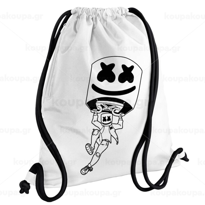 Fortnite Marshmello, Backpack pouch GYMBAG white, with pocket (40x48cm) & thick cords