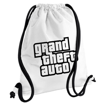 GTA (grand theft auto), Backpack pouch GYMBAG white, with pocket (40x48cm) & thick cords