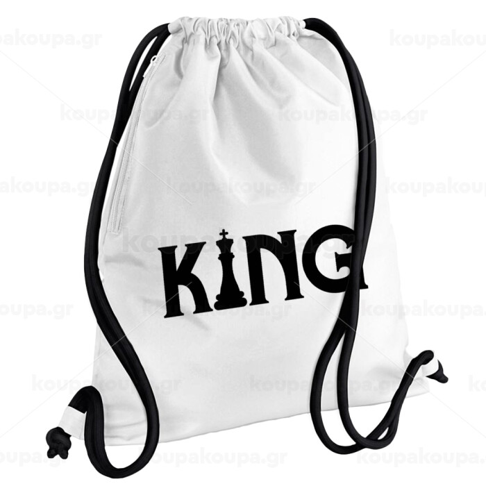 King chess, Backpack pouch GYMBAG white, with pocket (40x48cm) & thick cords