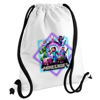 Minecraft Nether Portal, Backpack pouch GYMBAG white, with pocket (40x48cm) & thick cords