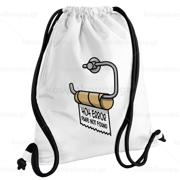 Page not found programmer toilet paper, Backpack pouch GYMBAG white, with pocket (40x48cm) & thick cords