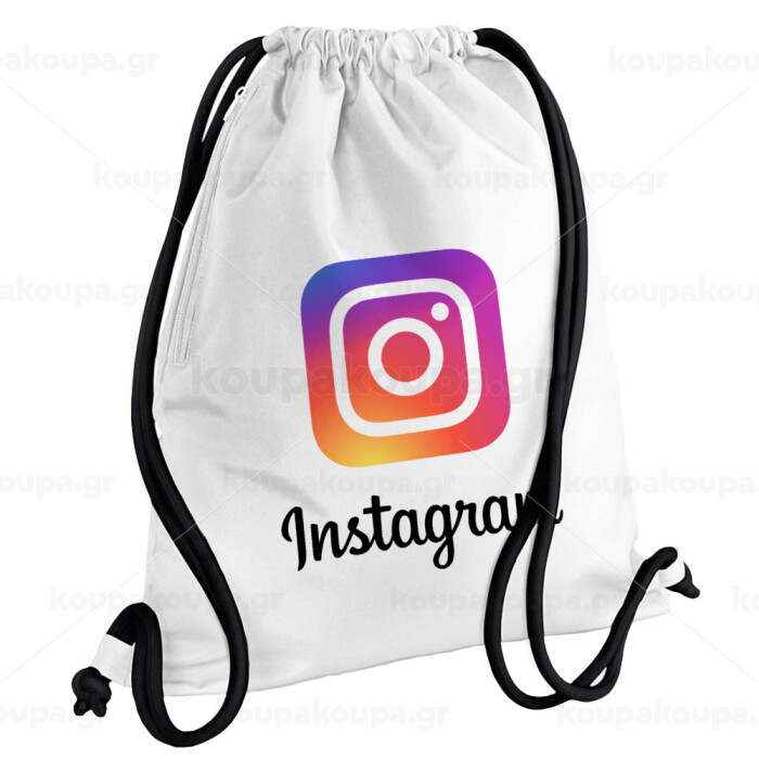 Instagram, Backpack pouch GYMBAG white, with pocket (40x48cm) & thick cords