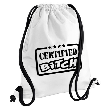 Certified Bitch, Backpack pouch GYMBAG white, with pocket (40x48cm) & thick cords
