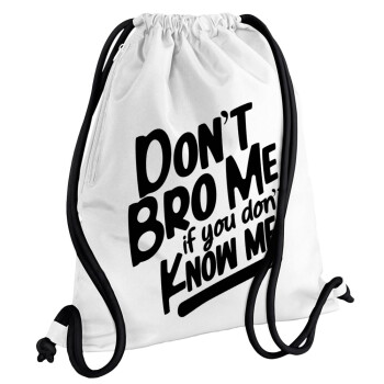 Dont't bro me, if you don't know me., Backpack pouch GYMBAG white, with pocket (40x48cm) & thick cords