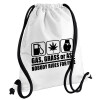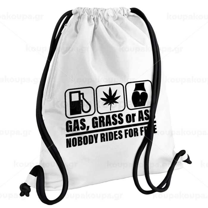 Gas, Grass or Ass, Backpack pouch GYMBAG white, with pocket (40x48cm) & thick cords