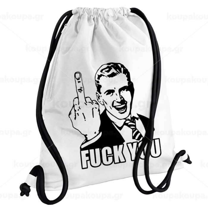 The finger, Backpack pouch GYMBAG white, with pocket (40x48cm) & thick cords