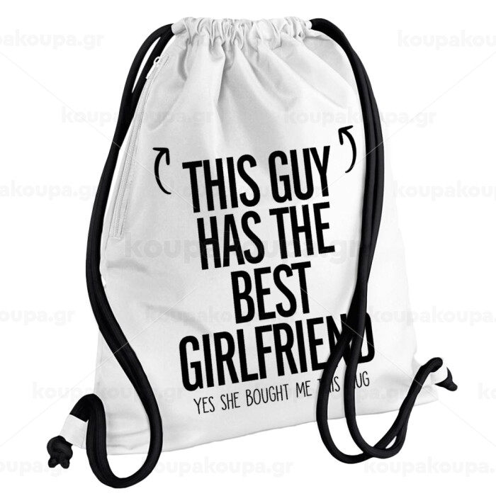 This guy has the best Girlfriend, Backpack pouch GYMBAG white, with pocket (40x48cm) & thick cords