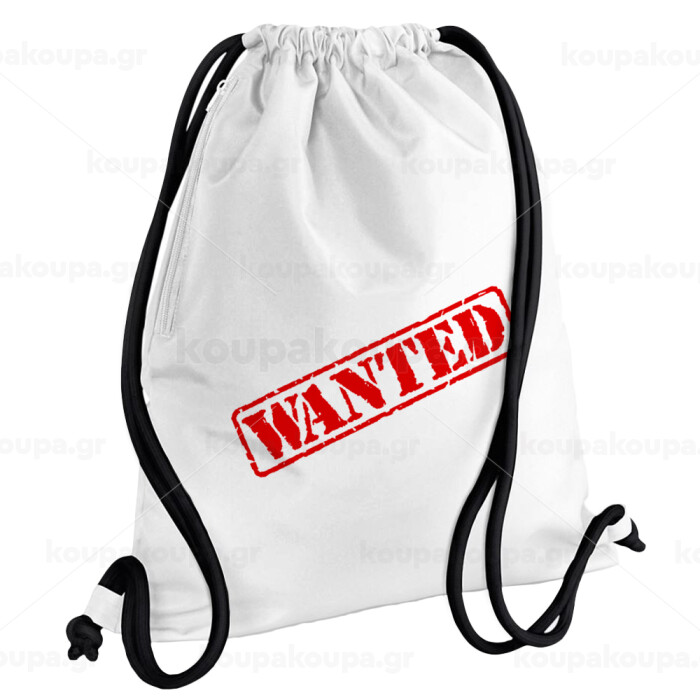 Wanted, Backpack pouch GYMBAG white, with pocket (40x48cm) & thick cords