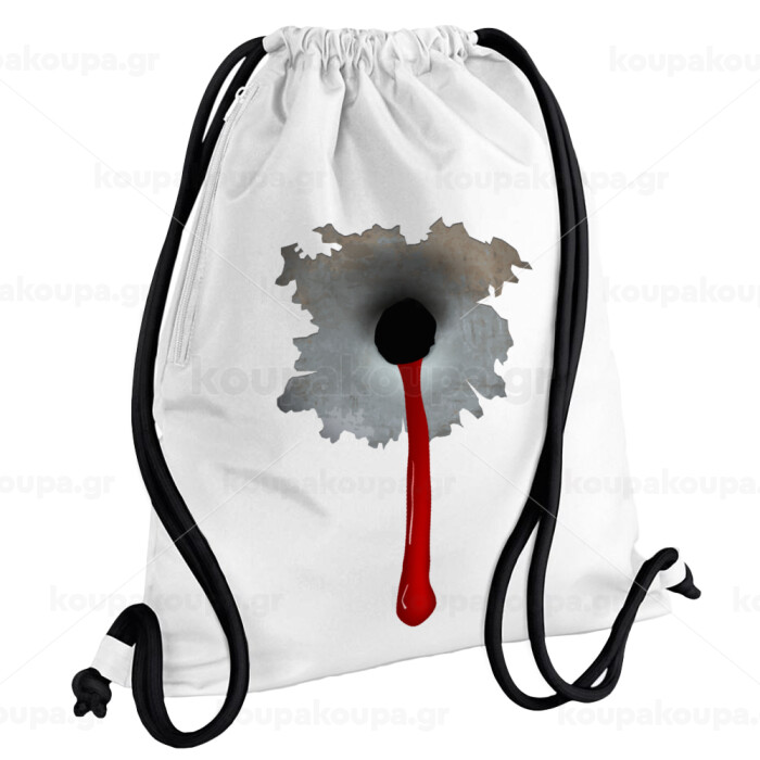 Bullet holes, Backpack pouch GYMBAG white, with pocket (40x48cm) & thick cords