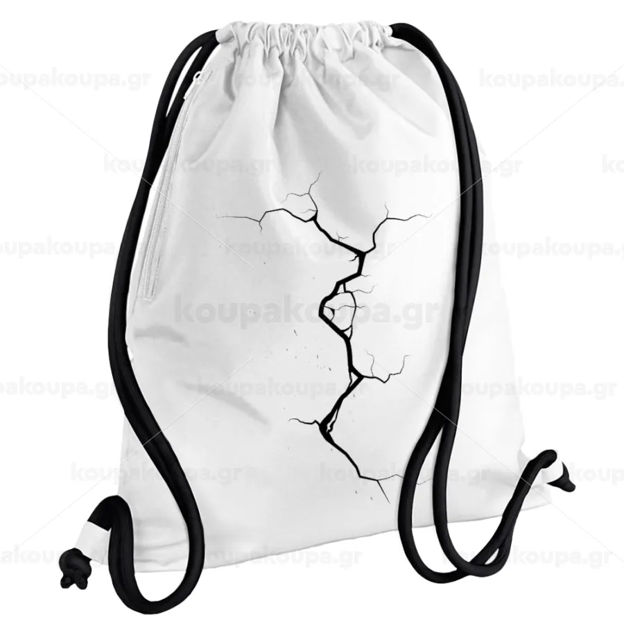 Cracked, Backpack pouch GYMBAG white, with pocket (40x48cm) & thick cords