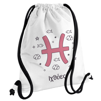 Ζώδια Ιχθύες, Backpack pouch GYMBAG white, with pocket (40x48cm) & thick cords