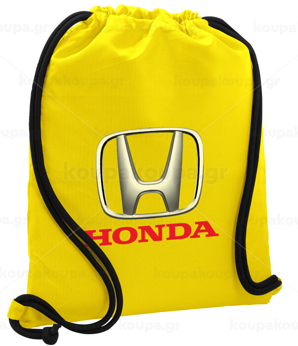 HONDA, Backpack pouch GYMBAG Yellow, with pocket (40x48cm) & thick cords