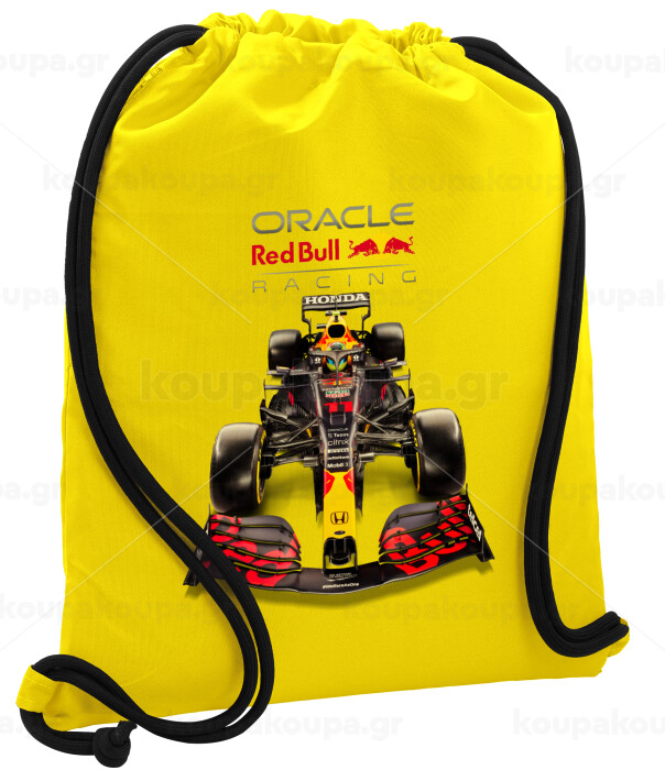 Redbull Racing Team F1, Backpack pouch GYMBAG Yellow, with pocket (40x48cm) & thick cords