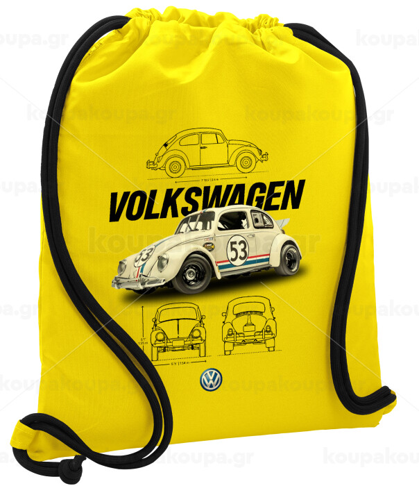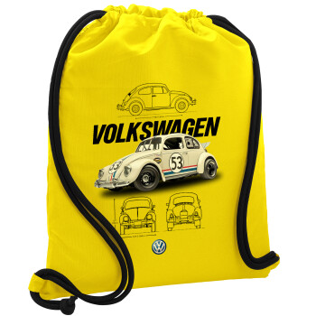 Volkswagen Beetle, Backpack pouch GYMBAG Yellow, with pocket (40x48cm) & thick cords