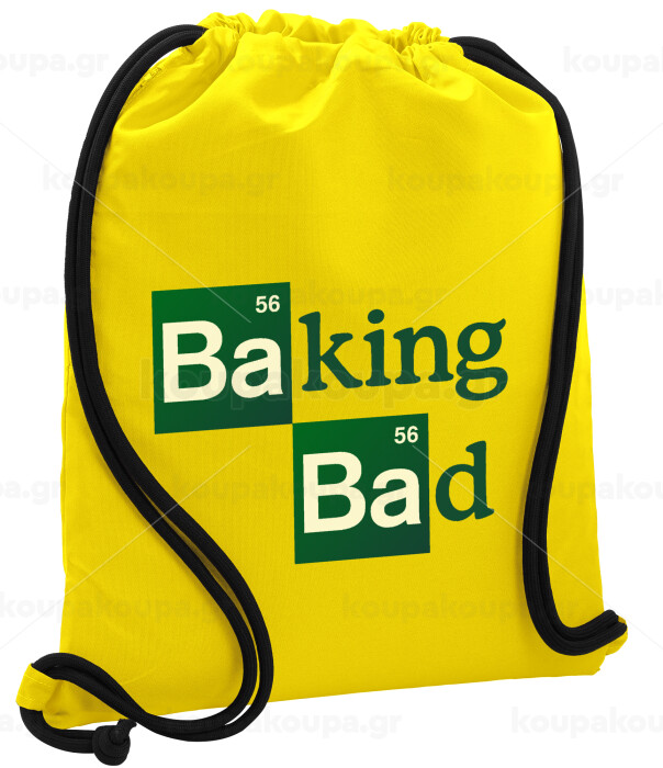Baking Bad, Backpack pouch GYMBAG Yellow, with pocket (40x48cm) & thick cords