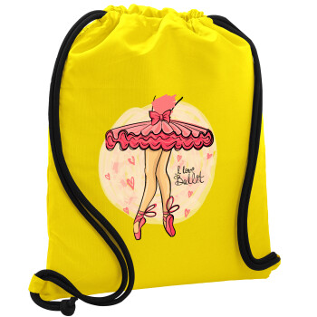 I Love Ballet, Backpack pouch GYMBAG Yellow, with pocket (40x48cm) & thick cords