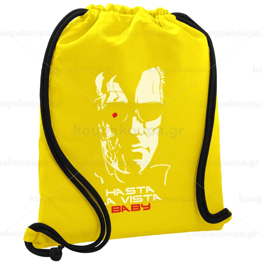 Terminator Hasta La Vista, Backpack pouch GYMBAG Yellow, with pocket (40x48cm) & thick cords