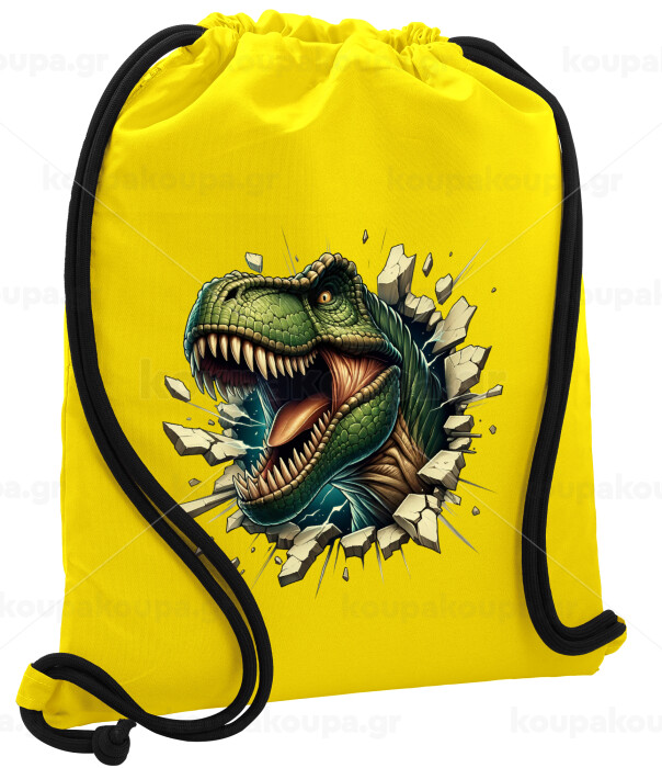 Dinosaur break wall, Backpack pouch GYMBAG Yellow, with pocket (40x48cm) & thick cords