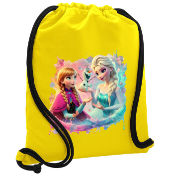 Elsa & Anna Princess, Backpack pouch GYMBAG Yellow, with pocket (40x48cm) & thick cords