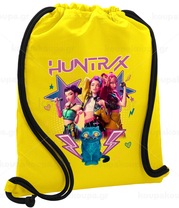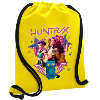 Huntrix K-pop series, Backpack pouch GYMBAG Yellow, with pocket (40x48cm) & thick cords