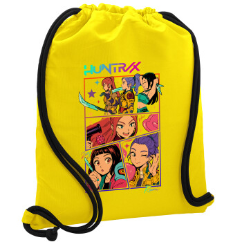 Huntrix Kpop Girls, Backpack pouch GYMBAG Yellow, with pocket (40x48cm) & thick cords