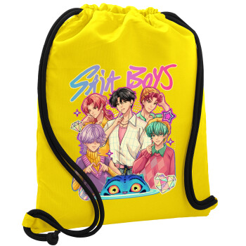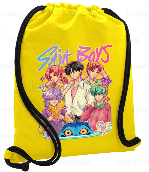Huntrix Saja Boys, Backpack pouch GYMBAG Yellow, with pocket (40x48cm) & thick cords
