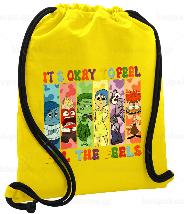 Inside Out It's Okay To Feel All The Feels , Backpack pouch GYMBAG Yellow, with pocket (40x48cm) & thick cords