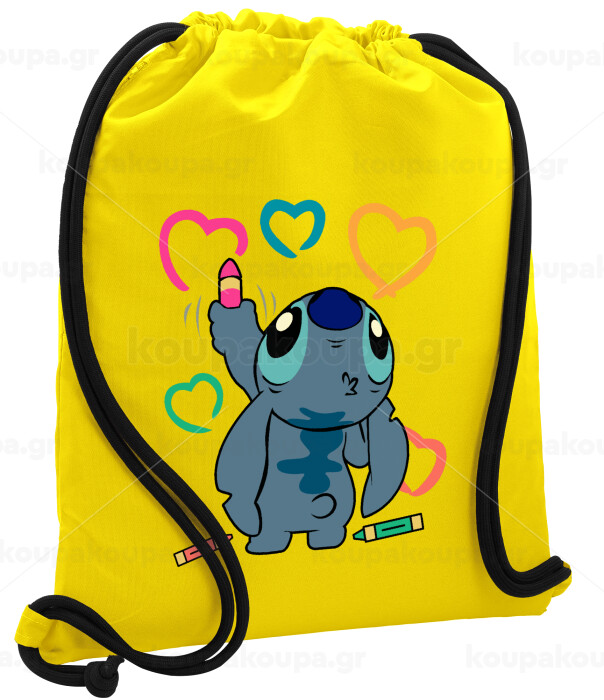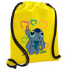 Lilo & Stitch painting, Backpack pouch GYMBAG Yellow, with pocket (40x48cm) & thick cords