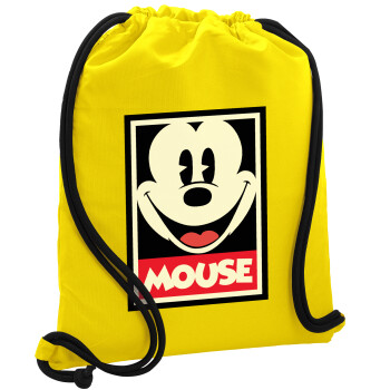 Mickey Mouse, Backpack pouch GYMBAG Yellow, with pocket (40x48cm) & thick cords