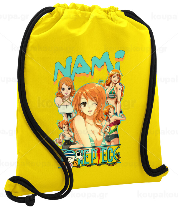Nami One Piece, Backpack pouch GYMBAG Yellow, with pocket (40x48cm) & thick cords