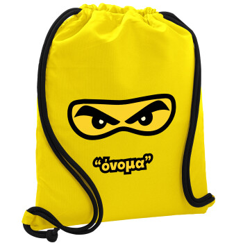 Ninja Eyes με όνομα, Backpack pouch GYMBAG Yellow, with pocket (40x48cm) & thick cords