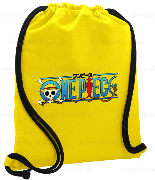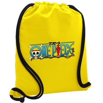 Onepiece logo, Backpack pouch GYMBAG Yellow, with pocket (40x48cm) & thick cords