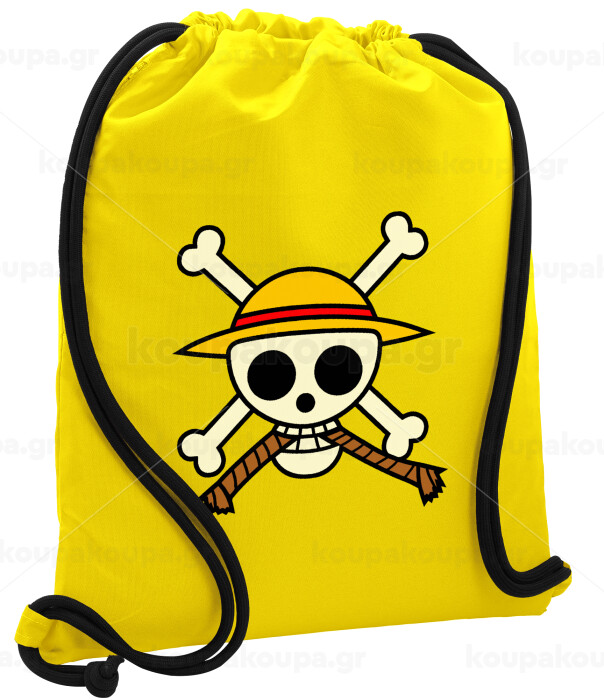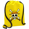Onepiece skull, Backpack pouch GYMBAG Yellow, with pocket (40x48cm) & thick cords