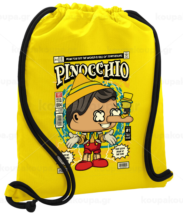 Pinocchio, Backpack pouch GYMBAG Yellow, with pocket (40x48cm) & thick cords